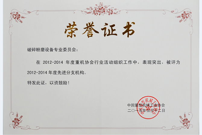 2015年5月11日至13日,以“適應(yīng)新常態(tài),尋找新動(dòng)力,謀求新發(fā)展”為主題,中國重型機(jī)械工業(yè)協(xié)會(huì)六屆四次會(huì)員代表大會(huì)暨理事會(huì)在北京順利召開。會(huì)議審議并通過了常務(wù)副理事長李鏡作的《在新常態(tài)中創(chuàng)出行業(yè)發(fā)展的新空間》工作報(bào)告、秘書長岳建忠作的《財(cái)務(wù)報(bào)告》,表彰了優(yōu)秀分支機(jī)構(gòu),我破碎粉磨設(shè)備專業(yè)委員會(huì)受到總會(huì)的表彰。