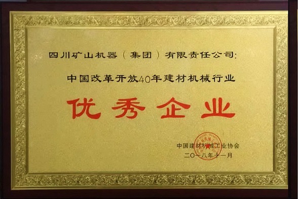 團榮獲“中國改革開放40周年建材機械行業(yè)優(yōu)秀企業(yè)”榮譽稱號。