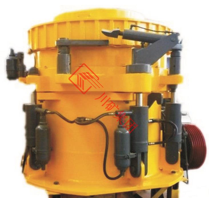 圓錐破碎機(jī)工作時,電動機(jī)通過彈性聯(lián)軸器、傳動軸和一對錐齒輪帶動偏心軸套轉(zhuǎn)動,破碎圓錐軸心線在偏心軸套的迫動下做旋擺運(yùn)動,使破碎壁和軋臼壁時而靠近,時而遠(yuǎn)離,礦石在破碎腔內(nèi)不斷地受到擠壓、撞擊和彎曲而被破碎。